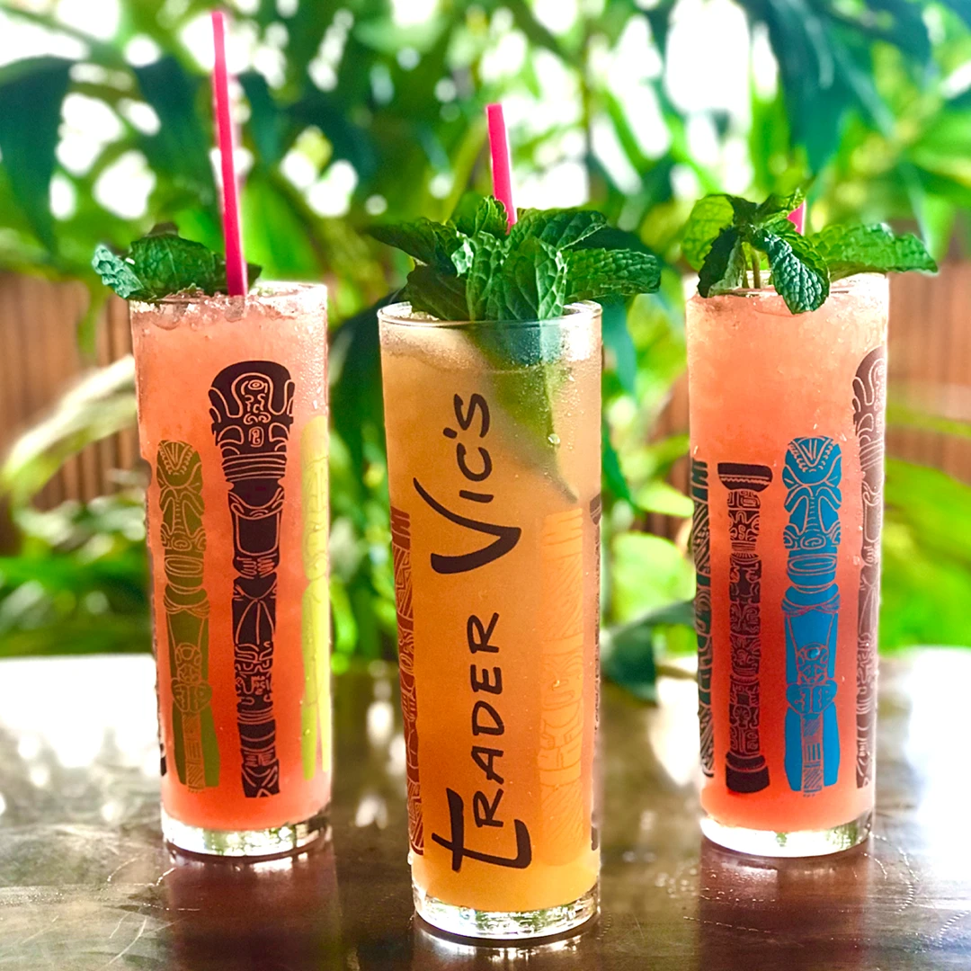 Glass is 13.5 oz. when filled to the brim with your favorite Trader Vic’s Cocktail!