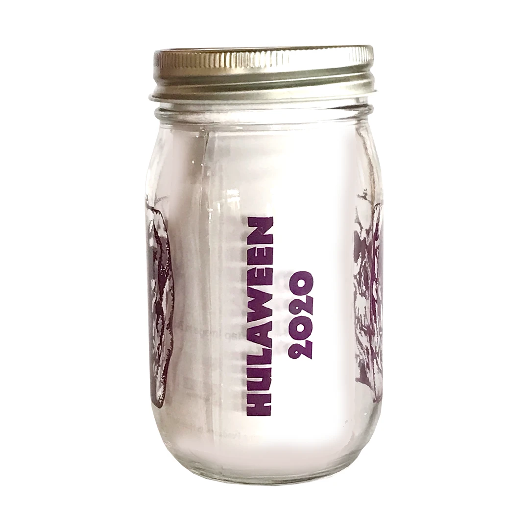 Get in the spirit of All Hallows Eve with our spooktacular Hulaween Mason Jar. The lid keeps your witches brew safe for travel!