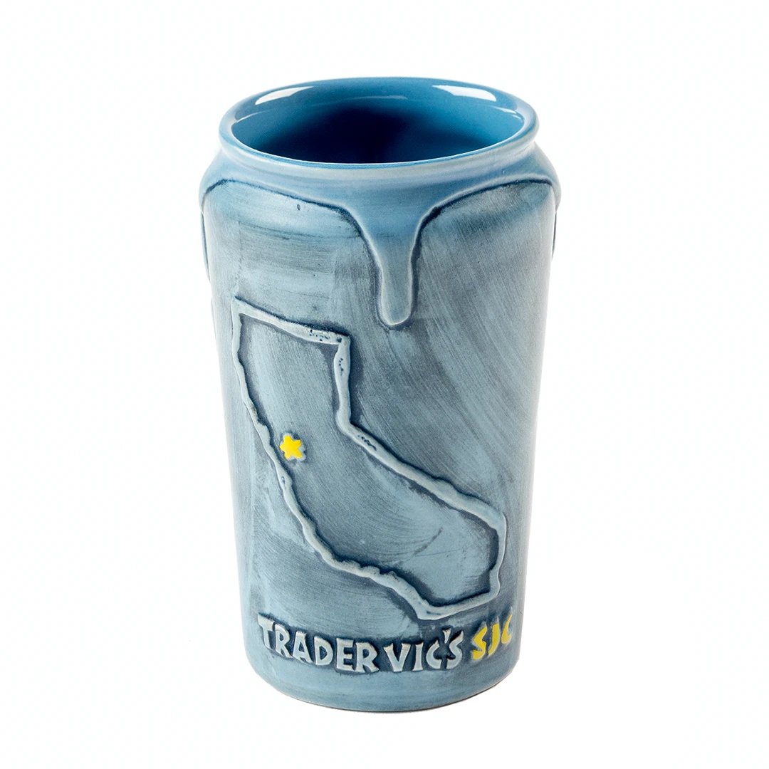 Our Signature Trader Vic’s San Jose Mug is fashioned after a design on a Marquesan Drum. We will be serving up “The Pilo Pilo” in it at the Mineta San Jose Airport. A rum libation with a hint of spice created as the signature cocktail for Trader Vic’s San Jose, all make you fly!