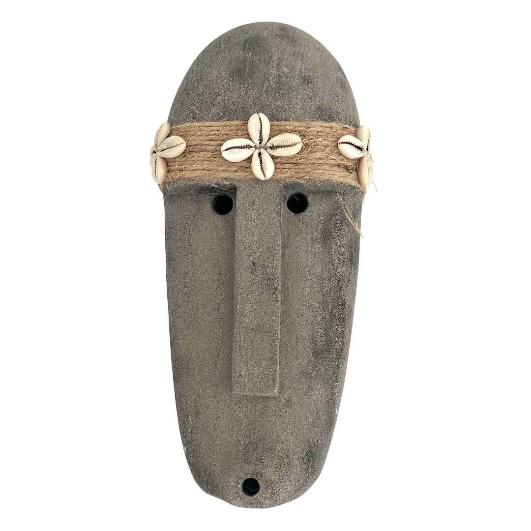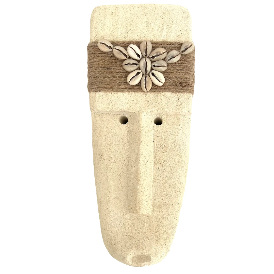 Hand carved 10″ sandstone mask from the island of Sumba. Traditionally, these statues are placed in and around the home to provide protection and healing for the occupants.